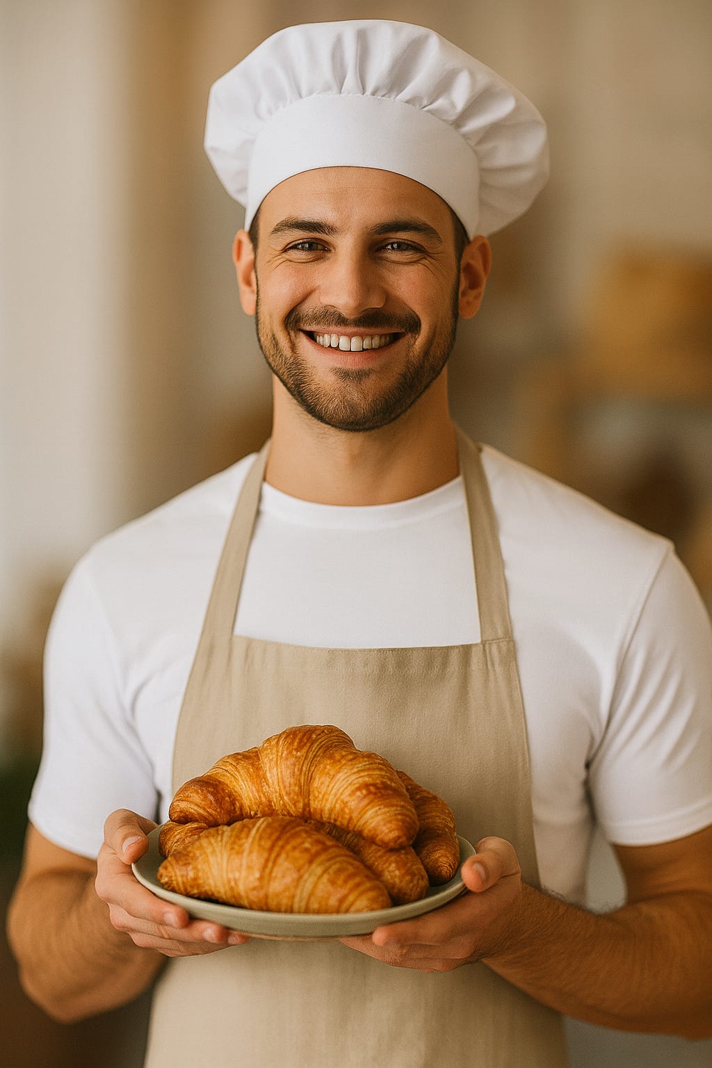Swears by cold butter and warm ovens. His croissants sell out by 9am on market day.